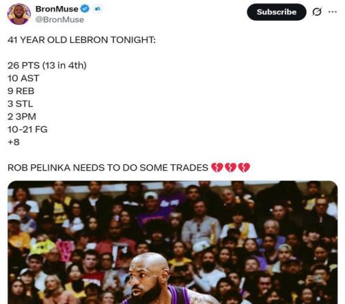賽后湖媒BronMuse直言:“佩林卡需要做一些交易了。”