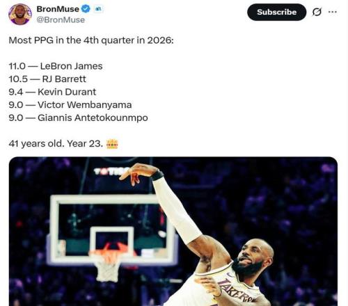 開(kāi)賽至今,詹姆斯末節(jié)場(chǎng)均可以拿下11分高居聯(lián)盟第一,巴雷特10.5分第二,杜蘭特9.4分第三,字母哥與文班均為9分并列第四。